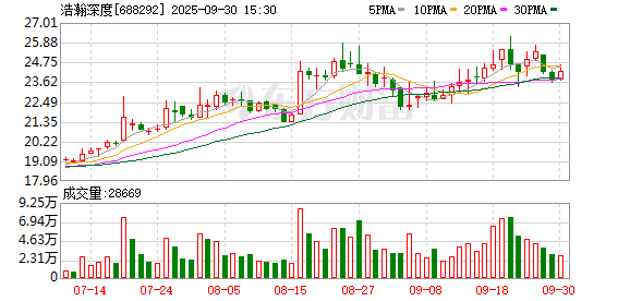 浩荡深度巨额来往成交20.00万股 成交额480.00万元