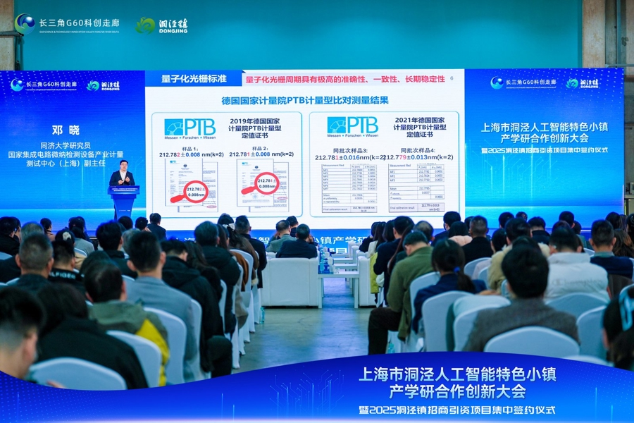 “洞泾镇与同济大学物理学院签订成果转化合作备忘录,推动国家级科创平台落地洞泾;携手上海工程技术大学共建‘苗圃—孵化器—加速器’梯度培育体系。”洞泾镇镇长李子表示,将紧抓松江大学城科创源建设战略机遇,全力构建覆盖“基础研究—成果转化—企业孵化—产业加速”的全链条创新生态。