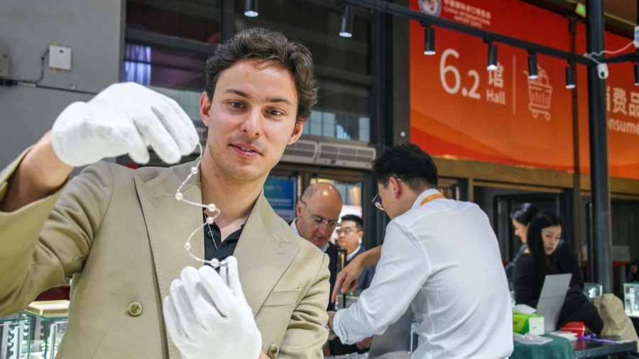 事实上,经过维缇珐的“珠宝游猎”,中国消费者早在6年前就开始认识这一珍珠品牌了。“我们与维缇珐在进博会合作了六年之久,今年是我第一次来到进博会现场,遇到了世界各地的同行,这里展现了上海作为全球城市的一面。”雅尼克惊叹于现场是如此热闹与国际化,他与其他欧洲品牌或企业有共同的感受,那就是进博会正在变得越来越重要,“所以我们尽可能多地展示设计师作品”。
