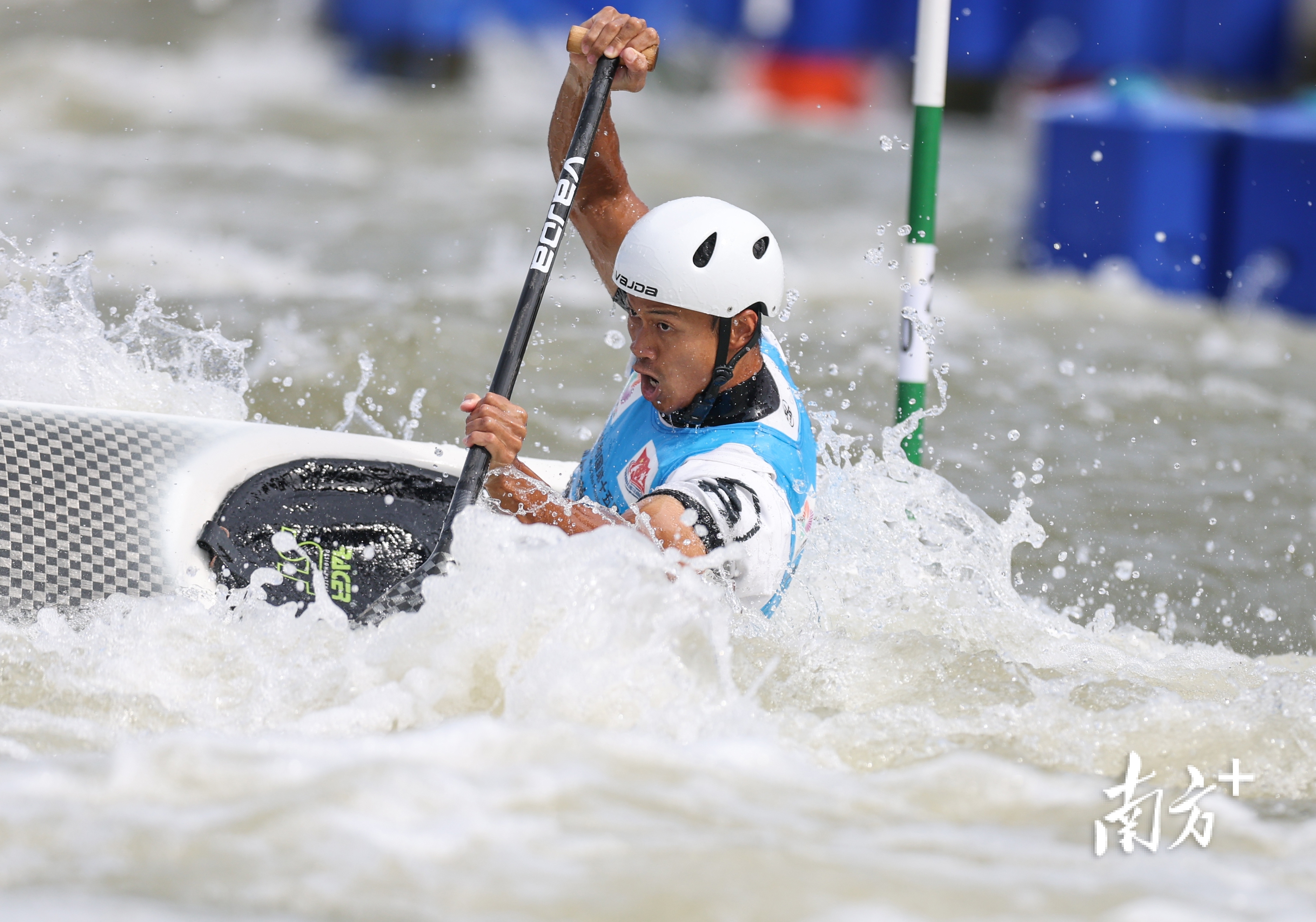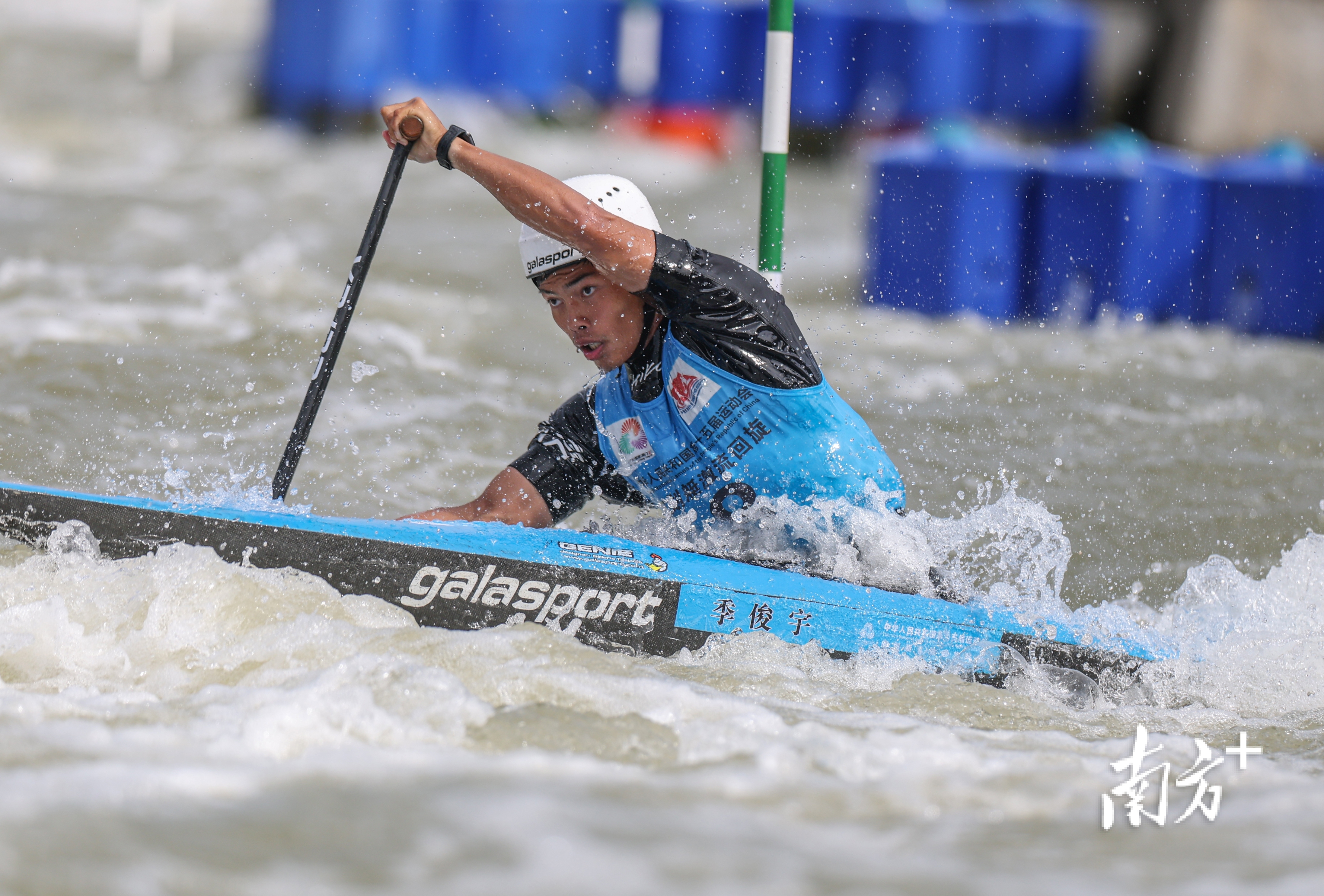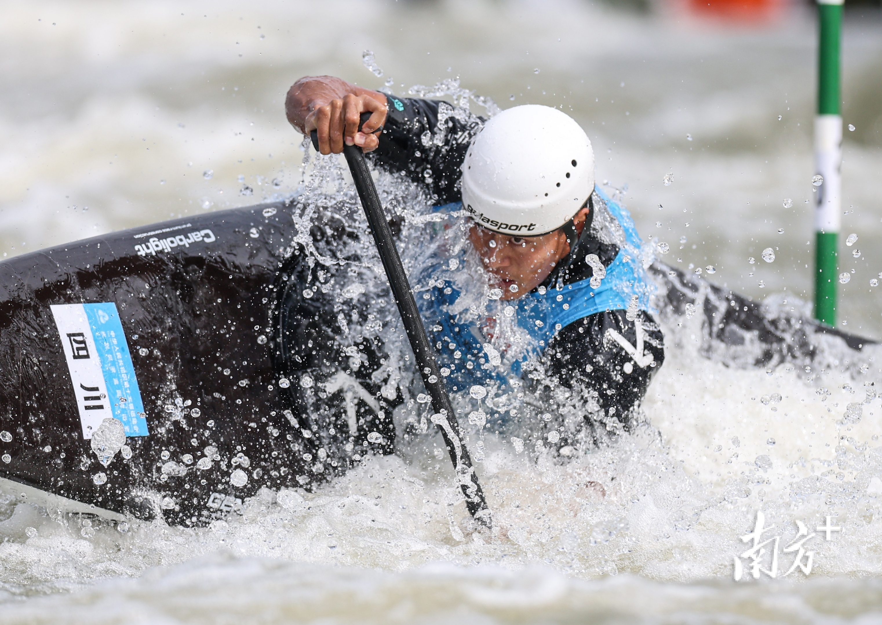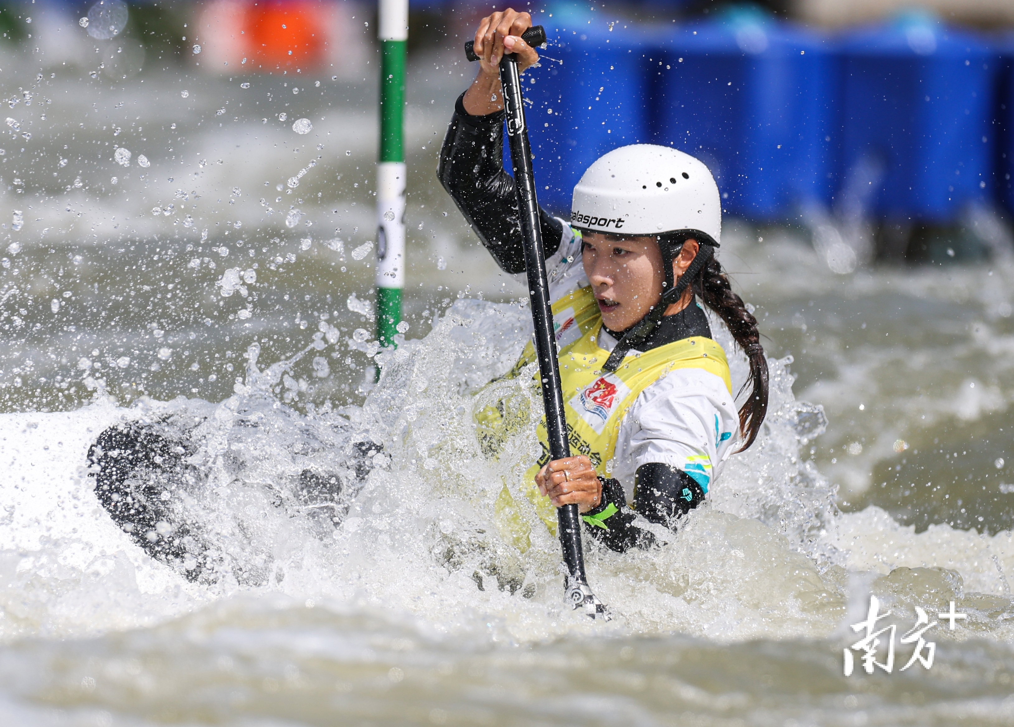 11月14日,第十五届全国运动会皮划艇激流回旋项目男子、女子单人划艇决赛在广州白云区举行。